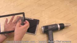 9. Now that the connectors have been separated, we can go ahead and start removing the digitizer. The glass digitizer is glued in place, so a heat gun will be needed in order to warm up the glue around the perimeter. Start working a heat gun around the perimeter of the glass digitizer, while taking care not to leave the heat gun in one position for too long. Keep the heat gun at an even distance from the glass digitizer, approximately 1 to 2 inches away. This process should take about 1 minute, so that the glue is sufficiently warmed up.